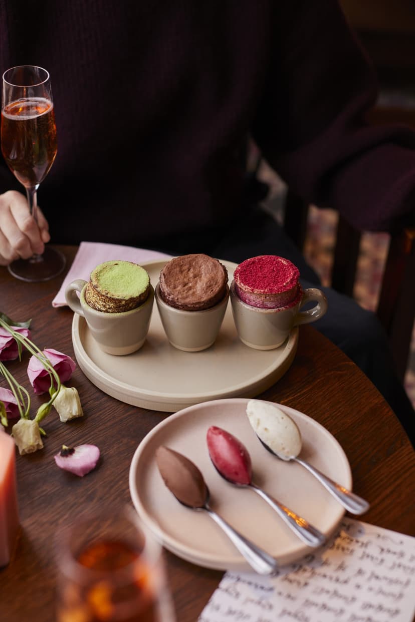 A sweet trio of pistachio, raspberry and chocolate soufflés, served with Jude’s vanilla and chocolate ice creams plus raspberry sorbet. A treat to swoon over! (£9.95)